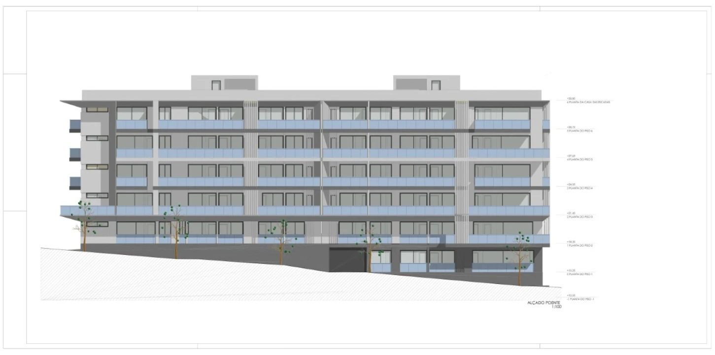 O projeto prevê 6 pisos acima do solo e 2 caves, incluindo 82 lugares de estacionamento para viaturas ligeiras (74 interiores e 8 exteriores) e 33 arrecadações.