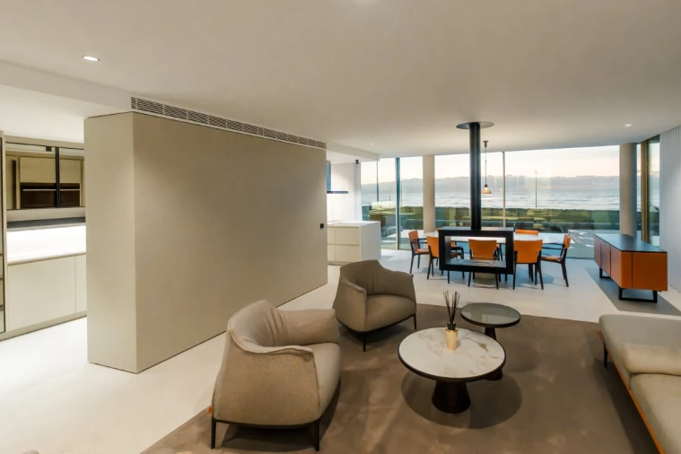 No exterior, sobressaem a piscina de borda infinita, que se prolonga visualmente até ao horizonte marítimo, o jardim privativo e as amplas varandas, perfeitas para momentos de lazer, convívio ou contemplação. Estes elementos reforçam o caráter exclusivo da moradia e elevam a experiência de viver junto ao mar.