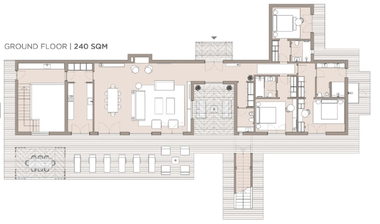 O design de interiores reflete a elegância intemporal das paisagens da Comporta e materiais naturais como a madeira, a pedra e o mármore conferem a cada espaço uma sensação de harmonia e tranquilidade, criando uma ligação fluida entre o interior e o exterior.