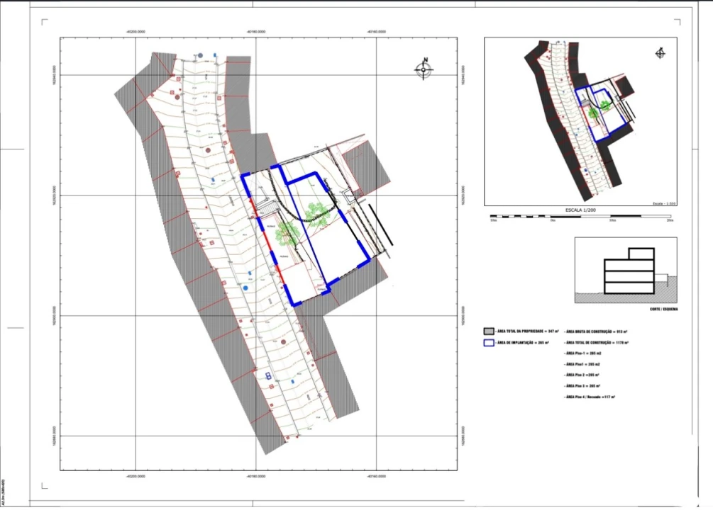 Com uma implantação de 347 m2 e possibilidade de construir em altura e área de terreno com vários apartamentos ou unidade hoteleira.