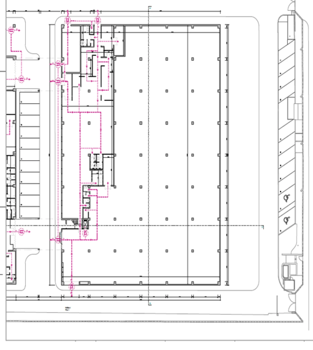 Zona de instalações técnicas, constituída por sala de grupo de geradores, sala de UPS, sala de baterias, posto de transformação, áreas de radiadores, central de bombeamento, depósitos de água e combustível, entre outros.