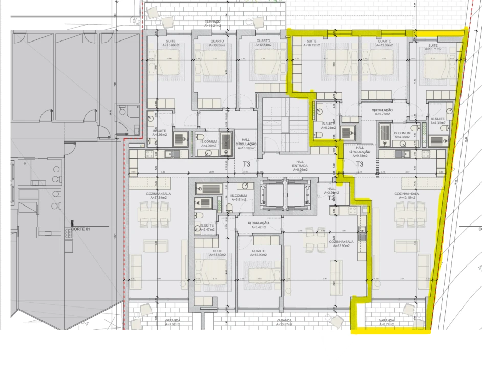 - Hall de acesso aos quartos com 9,78m2;
