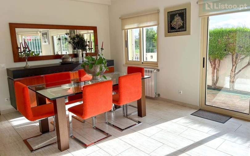 A moradia com 2 pisos independentes, está implementada num terreno de 600m2, proporcionando um excelente espaço exterior com horta e jardim, churrasqueira, estacionamento coberto para 2 carros e espaço para mais 2. Poço para a rega. A rega do pomar e da horta tem sistema automático. Possibilidade de área total de construção de 420m2 no total.
