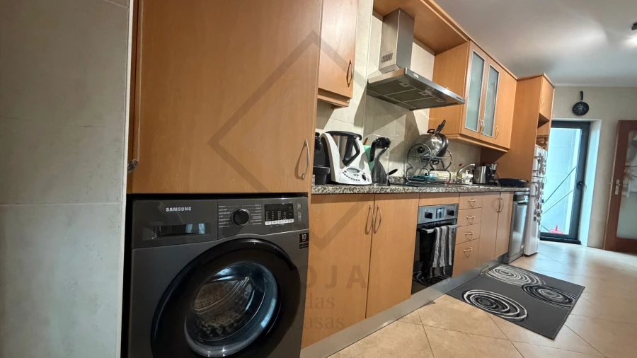Cozinha moderna e equipada (placa, forno, micro-ondas, frigorífico, máq. roupa e loiça)