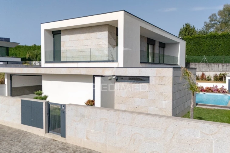 Fantástica moradia T3+1, nova (construção de 2025), situada em Lamaçães, concelho de Braga, a poucos passos do Minho Center. Excelente exposição solar, localização privilegiada em zona residencial de excelência, com acesso rápido a comércio e serviços, ideal para quem privilegia privacidade, conforto e qualidade de vida.