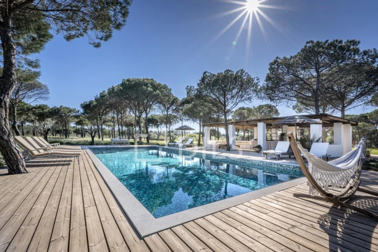 Moradia V5, próxima da Muda e do Hotel Sublime Comporta, com 491m² de área bruta e implantada num terreno de 7,5 hectares, situada no coração do campo, com excelente acessibilidade.