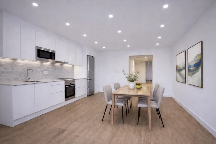 Sala em open space com a cozinha, proporcionando um ambiente moderno e funcional;