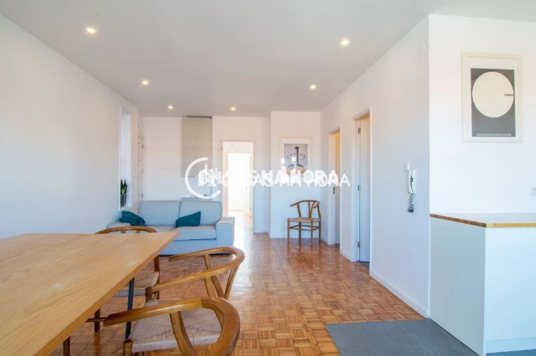 Apartamento todo remodelado, mobilado e equipado com 3 quartos, 2 casas de banho, uma completa e uma de serviço. Cozinha equipada com placa, forno, exaustor, frigorífico, máquina de lavar loiça e máquina de lavar roupa.