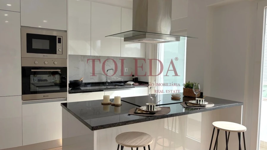 - Sala e cozinha em open space, com 43 m² e acesso a varanda aberta adjacente com vista para as ruas de Lisboa, ideal para refeições ao ar livre ou momentos de lazer. A Cozinha é moderna e totalmente equipada (Forno, Placa, Exaustor, Micro-ondas e Frigorífico e Congelador Combinado, Máquina de lavar louça, Máquina de lavar roupa, Termo Acumulador encastrados);