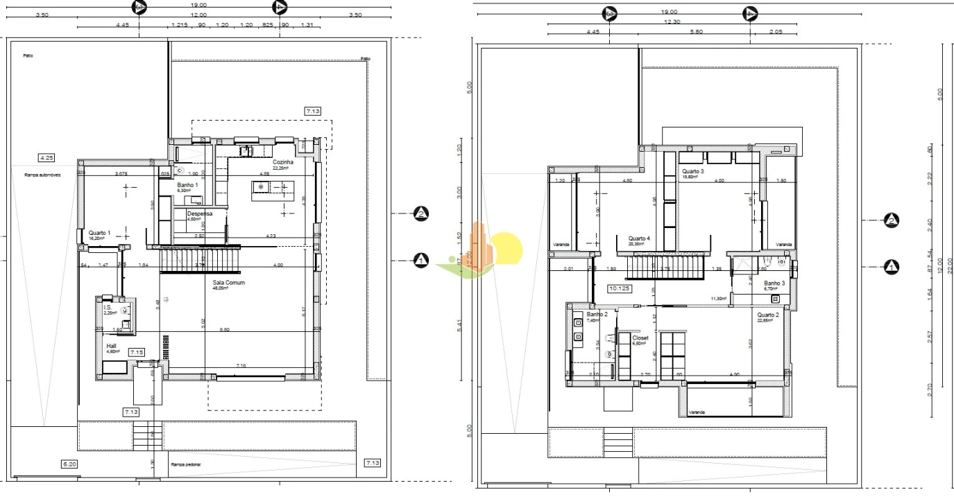Área de implantação 156m2, com possibilidade de construção em 3 pisos ( cave e dois pisos de habitação) até 410m2.