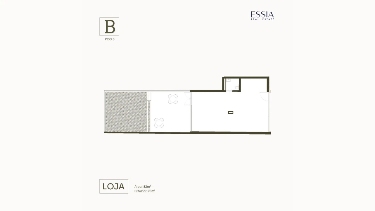 Composição e características do imóvel A loja conta com 82 m² de área interior, situada no R/C, beneficiando de fácil acessibilidade e grande exposição. Dispõe ainda de um espaço exterior de 75 m², ideal para expansão do negócio, esplanada ou zona de interação com clientes. O espaço em open space permite múltiplas configurações e adapta-se a diferentes tipos de negócios, desde comércio a prestação de serviços. A ampla frente envidraçada garante excelente luminosidade natural e reforça a visibilidade, valorizando a presença comercial e facilitando a interação com a zona envolvente. O imóvel dispõe de infraestruturas preparadas para instalação de diversos tipos de atividades, oferecendo um ambiente moderno, seguro e eficiente, integrado num edifício recente e de qualidade premium.