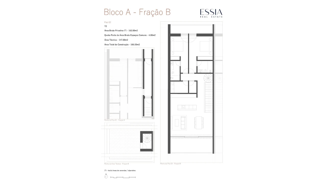 Composição e características do apartamento Com 162 m² de área privativa, uma varanda e uma área comum de uso exclusivo de 147 m², este T2 Duplex foi desenhado para proporcionar um estilo de vida voltado para o exterior, beneficiando de luminosidade natural ao longo de todo o dia. A sala em open space estende-se diretamente para a varanda, criando uma ligação fluida entre interior e exterior, ideal para momentos de lazer, refeições ao ar livre e convívio. A zona privativa integra dois quartos, com um WC completo de apoio à área privada, enquanto a área social conta com um WC de serviço, garantindo funcionalidade e conforto em todos os momentos. O apartamento dispõe ainda de um lugar de estacionamento, assegurando comodidade no dia a dia. Os materiais e acabamentos seguem a linha premium do Sea Side Living, assegurando elevado desempenho térmico e acústico, aliado a um design contemporâneo, sofisticado e duradouro.