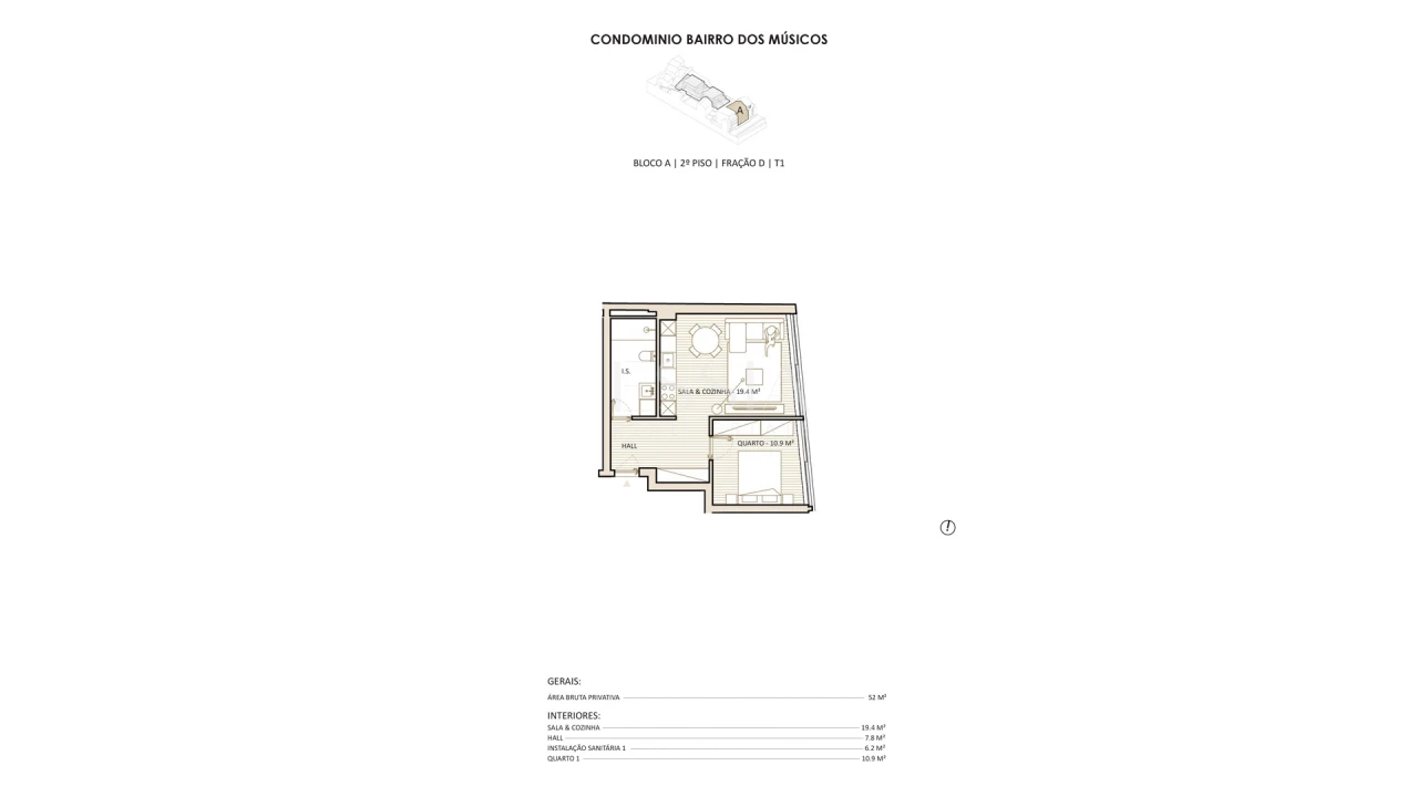 Este apartamento inserido no Condomínio Bairro dos Músicos, está localizado numa das zonas mais reservadas e autênticas do Porto. Um projeto contemporâneo composto por três edifícios distintos, pensado para responder a diferentes estilos de vida, desde uma vivência urbana prática até uma experiência residencial mais tranquila e familiar.