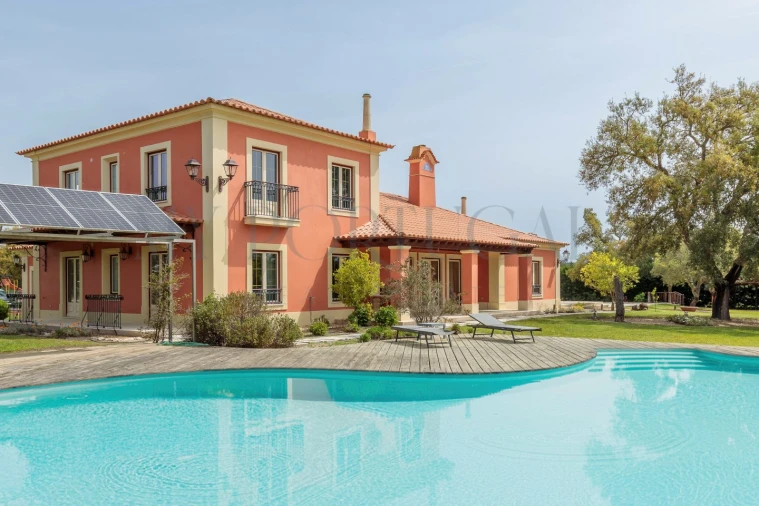 Localizada no Clube de Campo de Santo Estêvão, um condomínio fechado de baixa densidade, esta moradia de tipologia T4+1 (4 quartos e 1 escritório) destaca-se pelo conforto e privacidade num ambiente verde e sereno. Este condomínio afirma-se como um verdadeiro refúgio de alto padrão no campo, oferecendo total tranquilidade e infraestruturas desportivas exclusivas, tais como campo de golfe e equitação, estando a menos de uma hora de Lisboa. A propriedade insere-se numa envolvente de campo verde, beneficiando de um grande distanciamento entre os lotes vizinhos.