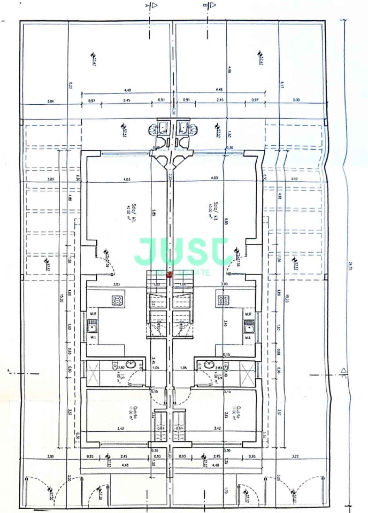 O r/c é composto por sala e cozinha em open space com área total 40.00m2, casa de banho e quarto com 11.00. A cozinha possui uma península, o que traz praticidade no dia-a-dia.