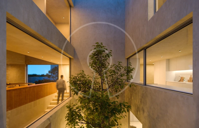 Jardins interiores e pátios iluminam e dão cor aos espaços desafogados, dando uma dimensão exterior às cozinhas, às salas e às suites.