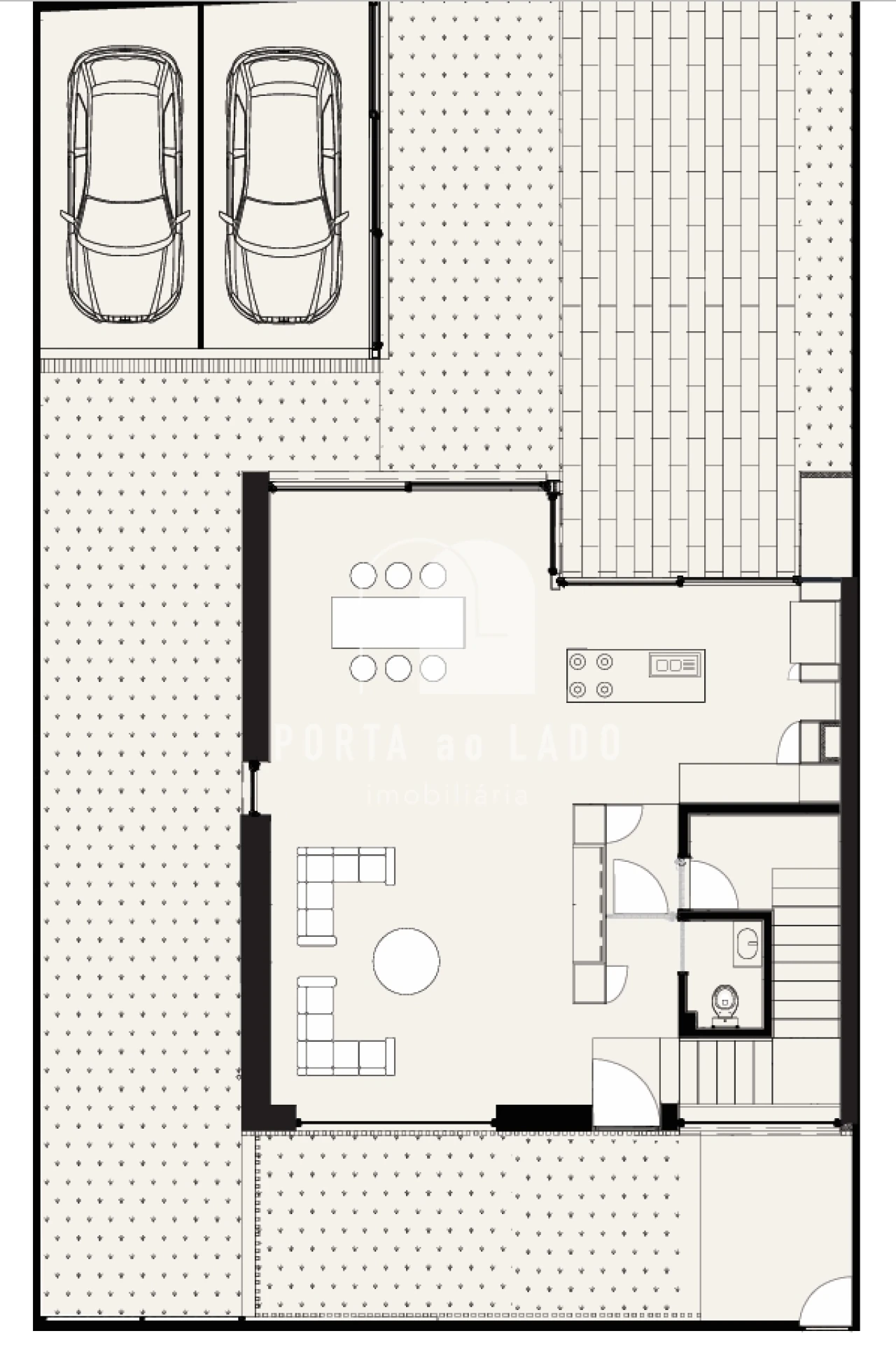 - Garagem e zonas técnicas bem integradas