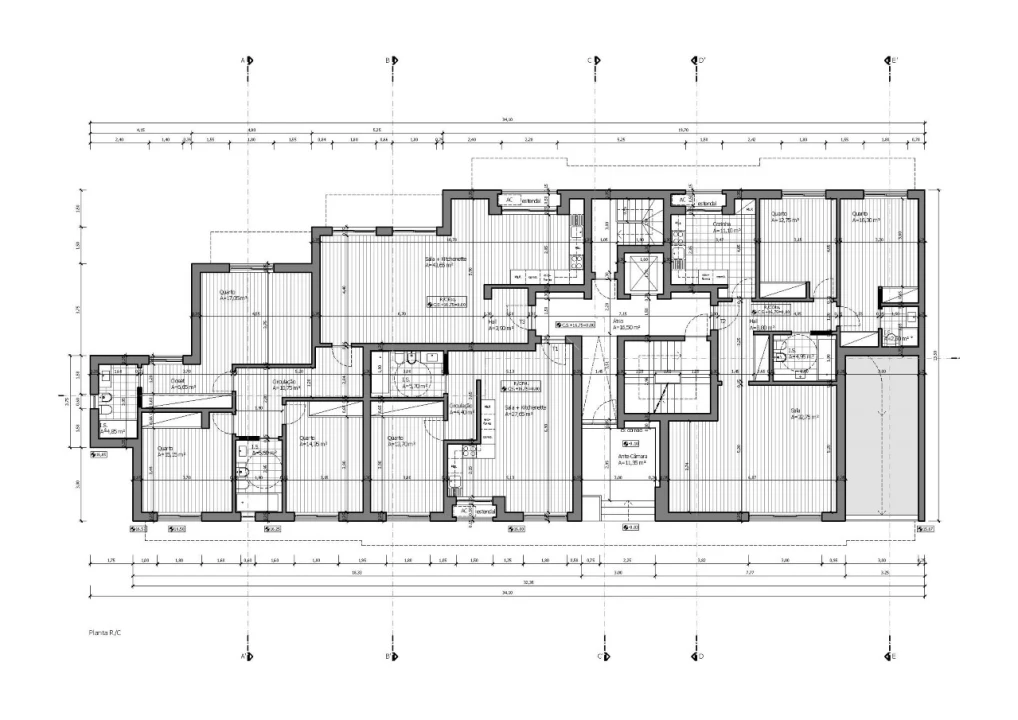 - Quartos: Oferecem roupeiros embutidos, paredes estucadas e pintadas, chão flutuante, tecto falso com projectores embutidos, criando um ambiente acolhedor e funcional.