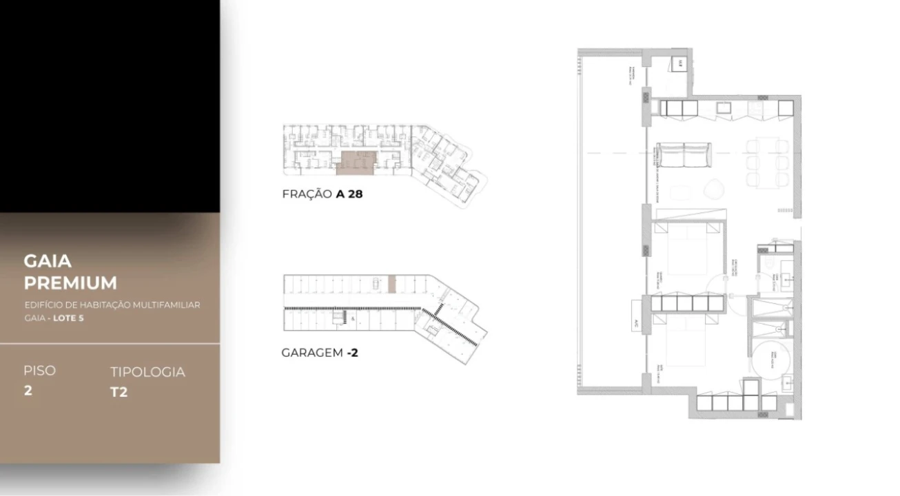 Apresentamos apartamento T2 em Oliveira do Douro, inserido no Gaia Premium, destacando-se pela amplitude, conforto térmico e soluções modernas, com certificação energética A.