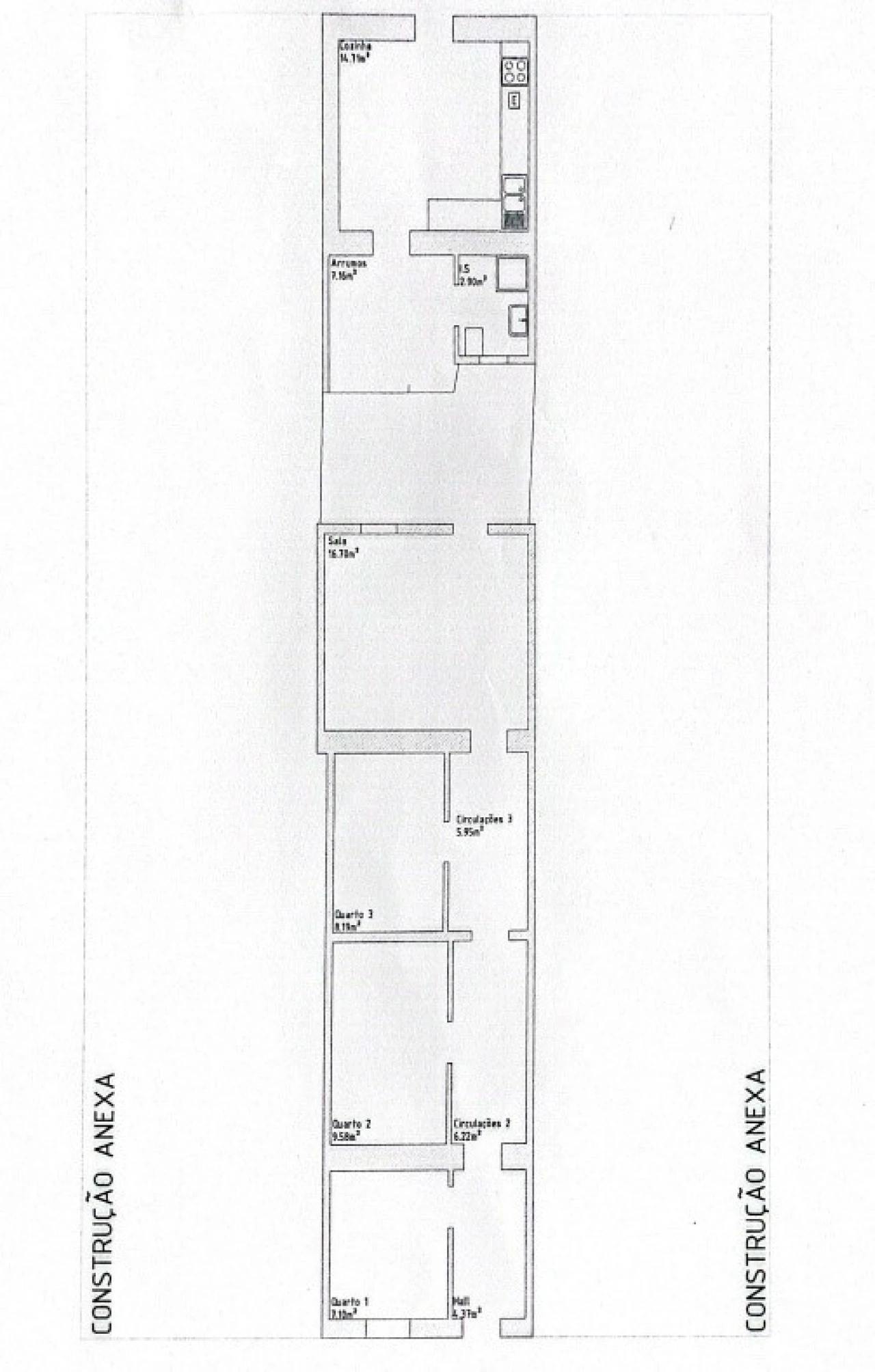 A cozinha encontra-se numa zona distinta da casa, proporcionando maior privacidade e organização. Entre a cozinha e os quartos existe um quintal, elemento diferenciador desta propriedade, que cria uma agradável ligação ao exterior. Este espaço ao ar livre é ideal para momentos de lazer, refeições no exterior ou até para cultivo, tirando partido do ambiente calmo e natural envolvente.