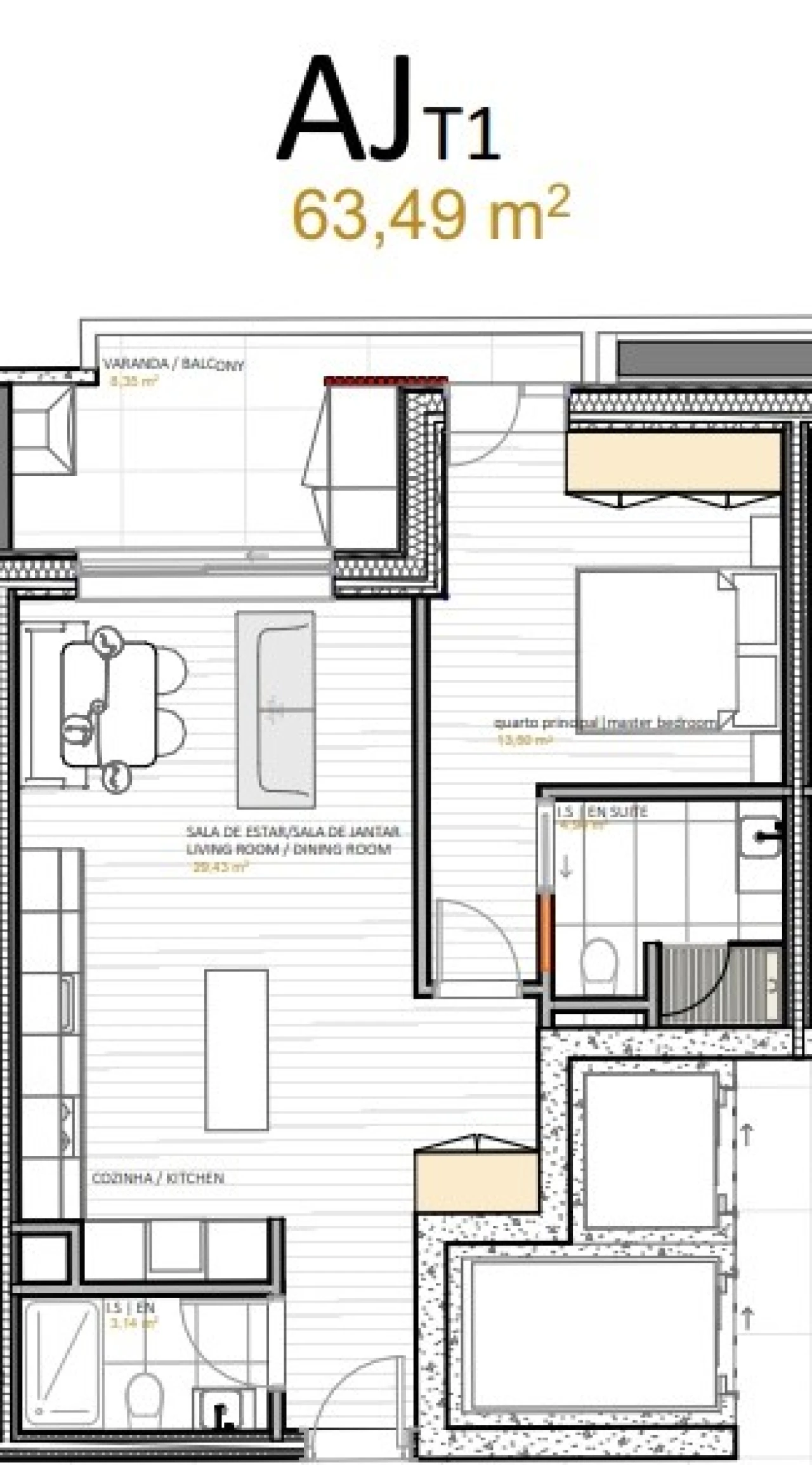 Apartamento T1 composto por Sala em openspace com varanda e uma Suíte . Tem ainda um lugar de garagem