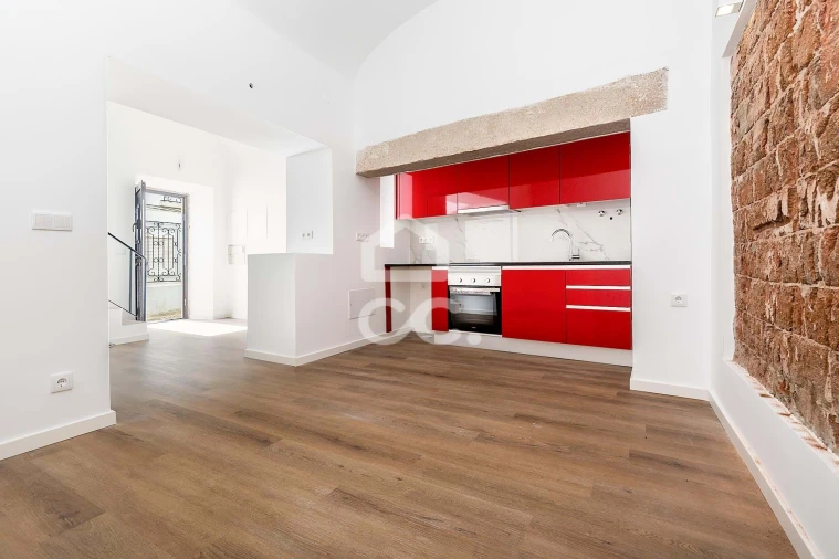 Ao entrar, percebe-se imediatamente o cuidado na intervenção: linhas modernas, acabamentos de qualidade e uma base neutra e elegante, combinados com elementos históricos preservados como as paredes em pedra e os arcos tradicionais que conferem identidade e carácter únicos ao imóvel.