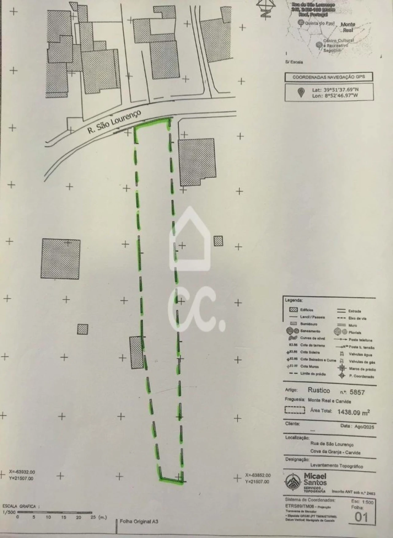 O terreno tem uma área de 1.438 m2 inserido no aglomerado urbano com viabilidade de construção