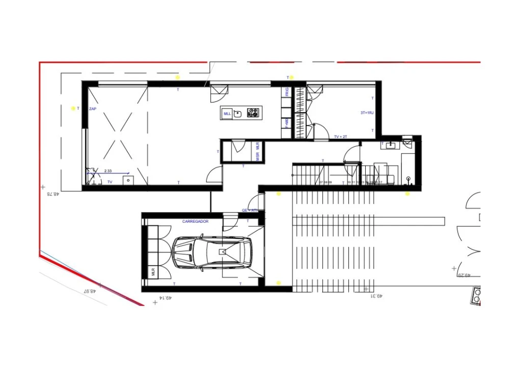 Garagem fechada com portão automático e vídeo porteiro.