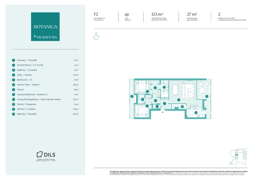 Apartamento T2 com 123 m2, varanda de 27 m2 e 2 lugares de estacionamento em box, inserido num novo projeto exclusivo que combina a serenidade da natureza com a modernidade de um estilo de vida urbano e sofisticado.