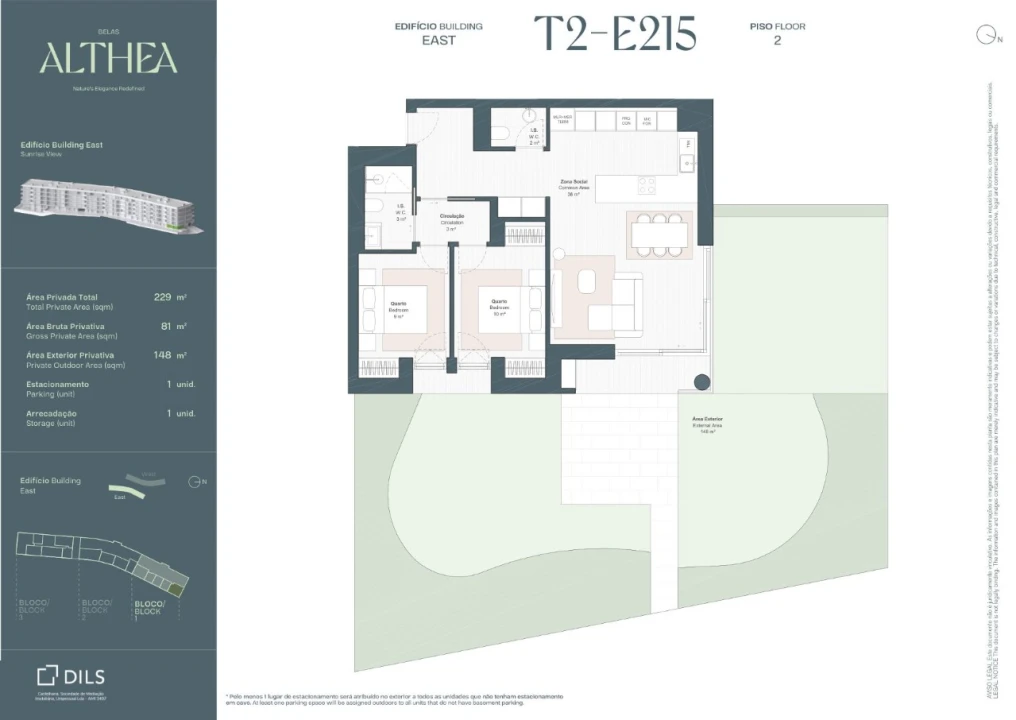 Apartamento T2 com 81 m², varanda de 147 m² e 1 lugar de estacionamento, inserido num novo empreendimento a nascer no Belas Clube de Campo, inserido em paisagem verde, junto ao Belas Golf Course.
