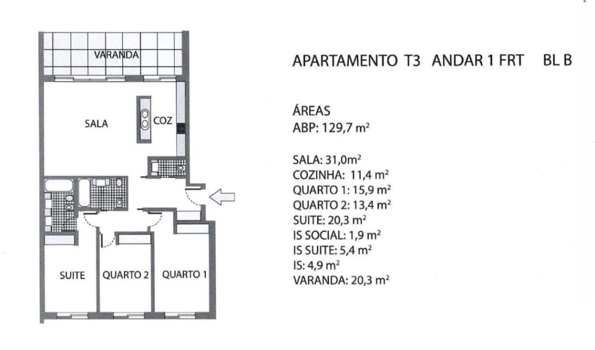 É composto por sala comum, cozinha totalmente equipada, 3 quartos amplos, um deles em suite, um WC de apoio aos 2 quartos. Ar condicionado nos 3 quartos e sala. Ótima Varanda com mais de 30m2, com exposição solar nascente/ poente, tendo uma vista desafogada para a serra de Sintra.