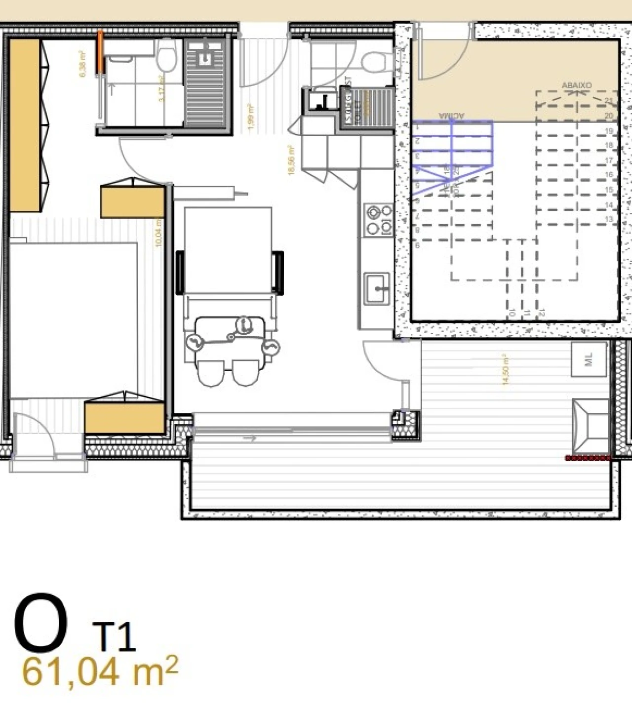 Apartamento T1 composto por Sala em openspace com varanda e uma Suíte . Tem ainda um lugar de garagem