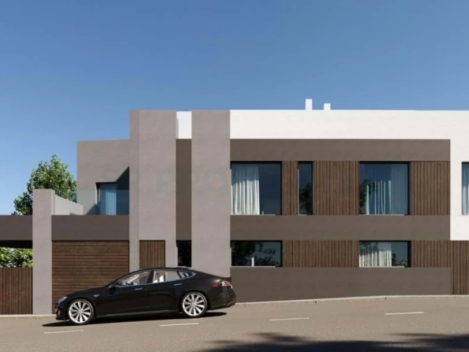 Terreno urbano no Montenegro, Faro, inserido numa zona residencial tranquila, com projeto para construção de moradia geminada V3 com piscina privada.
