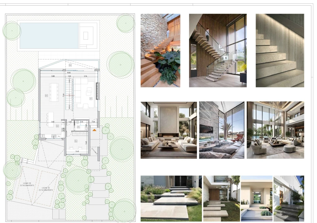 Inserida num lote de 634 m² e com uma área de construção de 334 m², a moradia apresenta uma distribuição inteligente e sofisticada. Ao nível da cave, dispõe de garagem para duas viaturas, sala de estar, cozinha gourmet totalmente equipada, casa de banho social e lavandaria. Este piso estabelece ainda ligação direta a uma deslumbrante zona exterior com piscina, ideal para momentos de lazer e convívio, enquadrada por vistas panorâmicas sobre a serra e os palácios da encantadora vila de Sintra, classificada como Património Mundial.