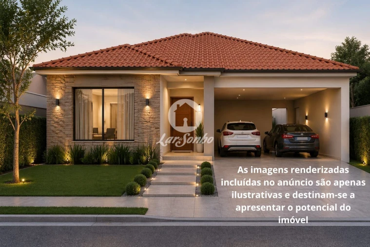 Complementada por garagem fechada para duas viaturas e lavandaria independente, esta moradia reflete um estilo de vida prático, moderno e equilibrado.