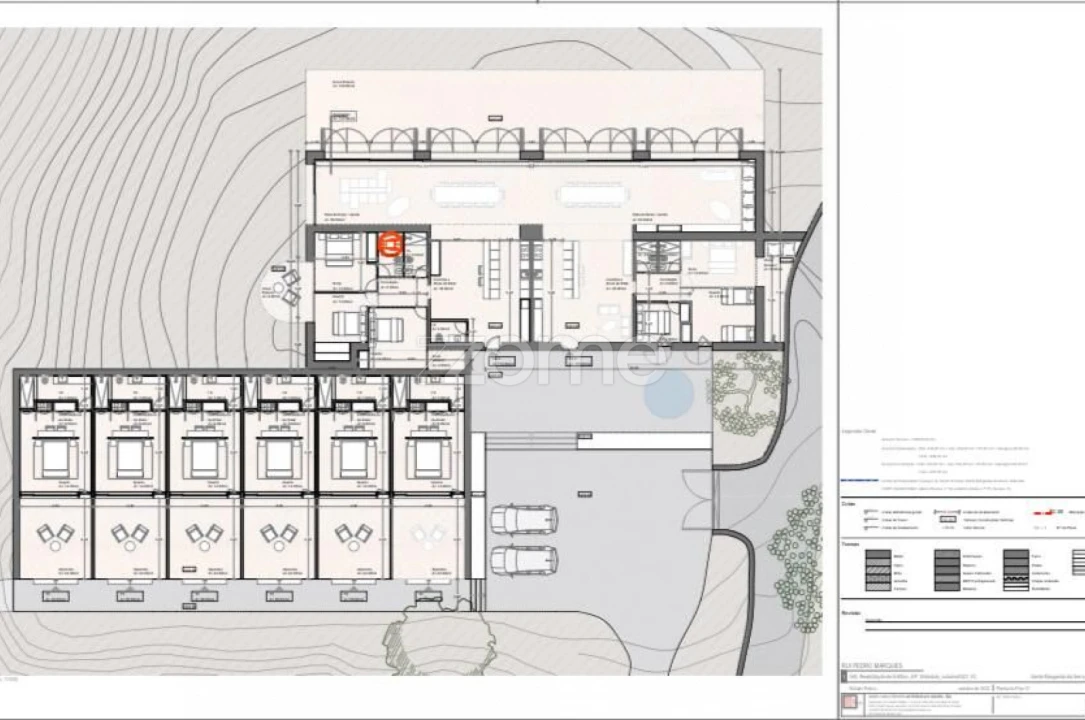 Está prevista uma área total de construção de 500 m², incluindo duas habitações principais, seis suites contíguas, um estúdio independente, garagem e uma zona de lazer com piscina, oferecendo uma solução versátil tanto para habitação como para investimento.