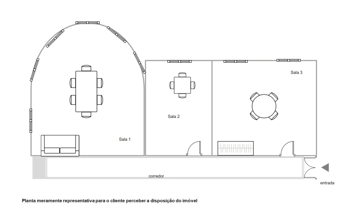 Uma sala ampla com janelas voltados para os Aliados e duas salas mais pequenas ao lado voltadas para rua lateral