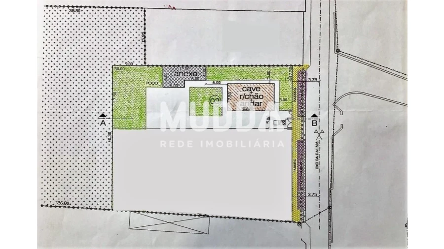 O terreno permite a construção de moradia (cave + 2 pisos acima da cota da soleira) e anexos.