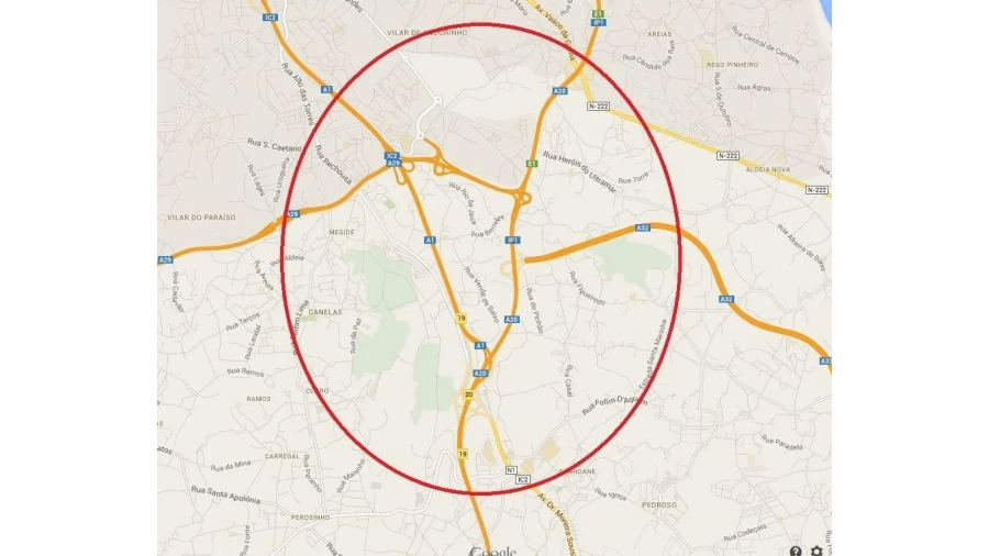REF 573 - Terreno Quinta com 27.843m2 FACE á A1, junto ao nó das A29-A1-A32 na zona de S. Lourenço entre os nós de Vilar de Andorinho e dos Carvalhos. 4 poços, espigueiro, frentes de ruas em 50% do terreno. todo o terreno dá construção.