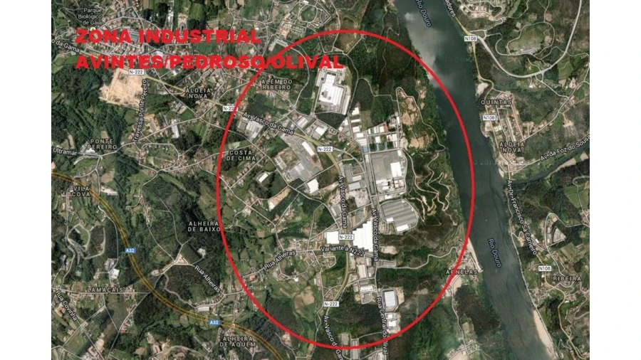 REF 1521 - Terreno industrial com 10.398m2 em Avintes bem perto da EN222 com pequeno declive ideal para equipamento industria/comercio/serviços , rua larga e excelente acessos TIR.