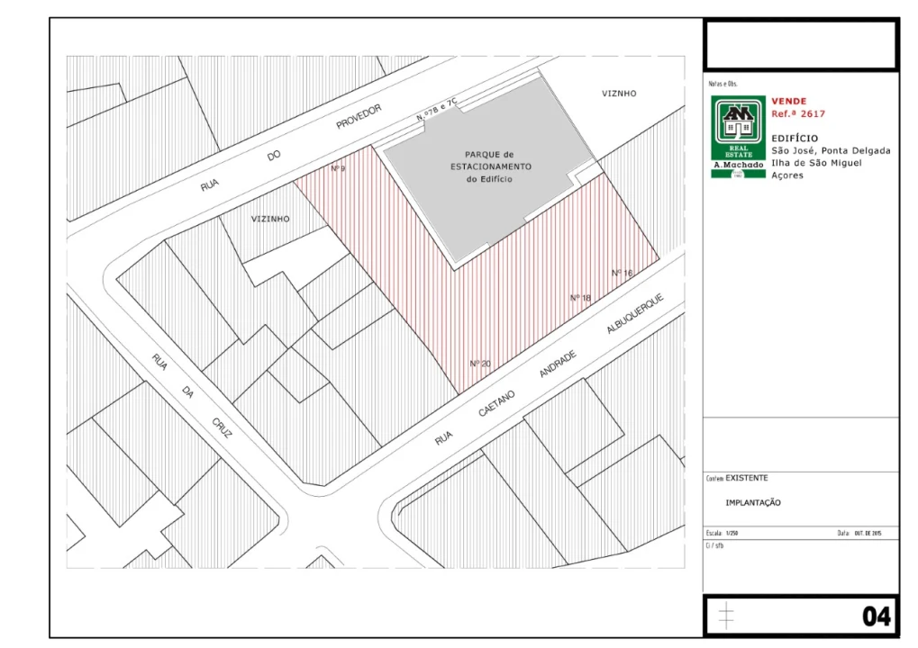 OBSERVAÇÕES: Qualquer pretensão de reabilitação, reconstrução ou alteração do existente, terá de ser projectado e submetido, por conta do potencial comprador, para análise e aprovação por parte do Município de Ponta Delgada.