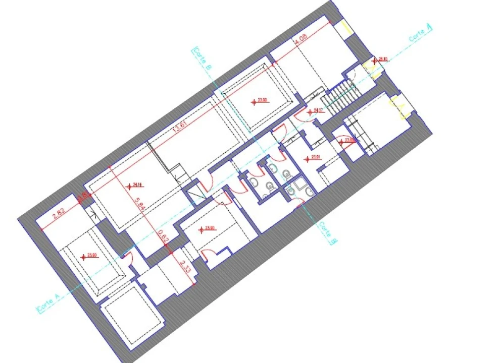 O edifício que apresentamos, para remodelação total, possibilita o desenvolvimento de um projeto criativo e inovador realizado completamente à sua medida e de raiz. Este prédio de traça antiga e cheio de história, com as suas amplas janelas, varandas compridas e tetos altos, transformar-se-á num projecto de sucesso, apetecível a quem quiser lá residir, ou instalar o seu negócio. As possibilidades só dependem da criação.