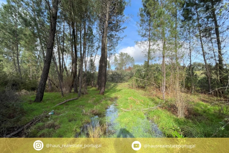 O terreno é totalmente plano, atualmente com floresta, oferecendo boa privacidade e uma envolvente natural com bonitas vistas para as montanhas da região.
