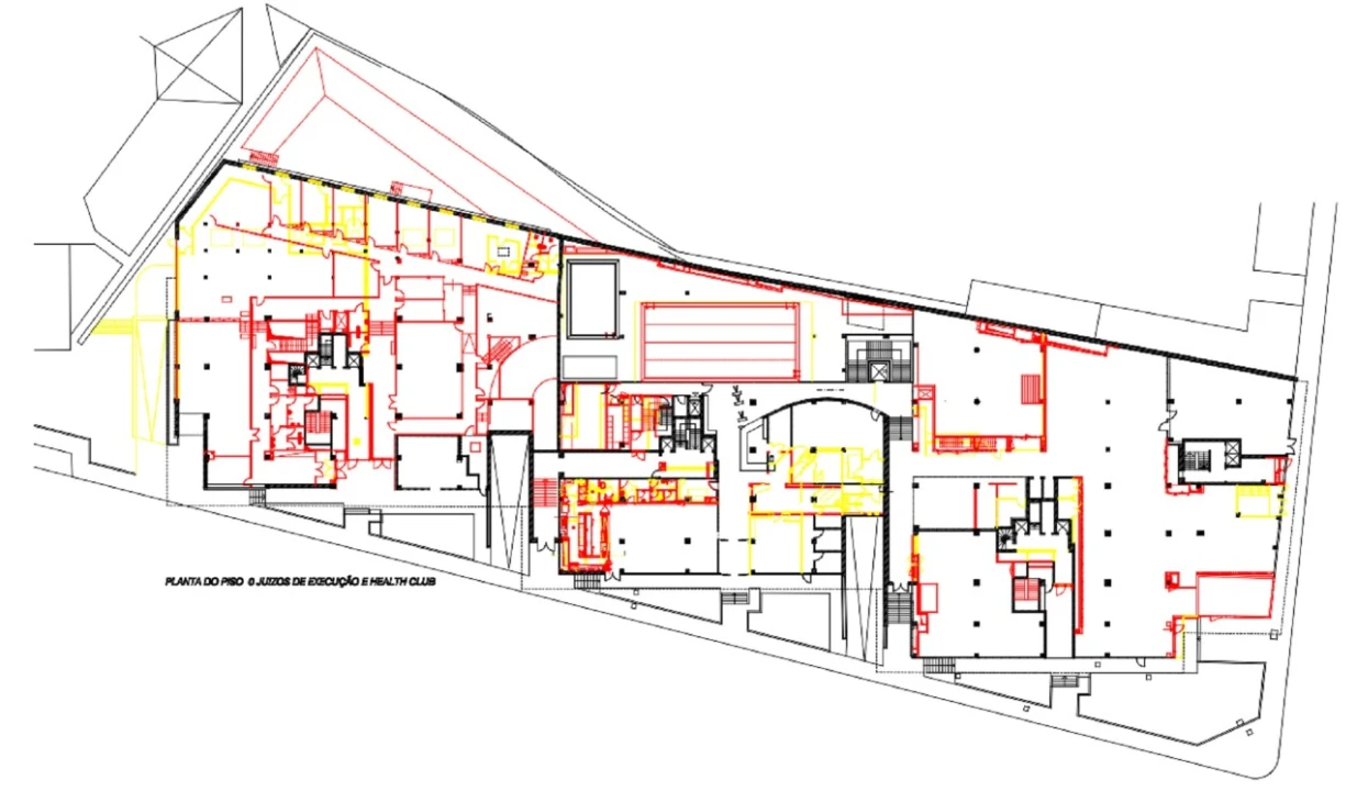 O imóvel encontra-se com a configuração do anterior inquilino, que desenvolvia a atividade de Health Club e distribui-se em dois pisos, piso 0 e cave.