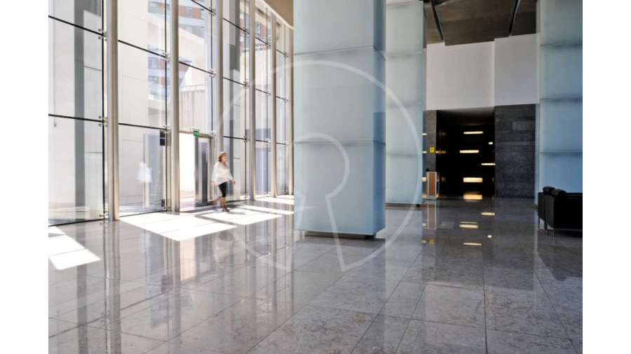 O escritório situa-se num edifício moderno só de escritórios com portaria na receção.