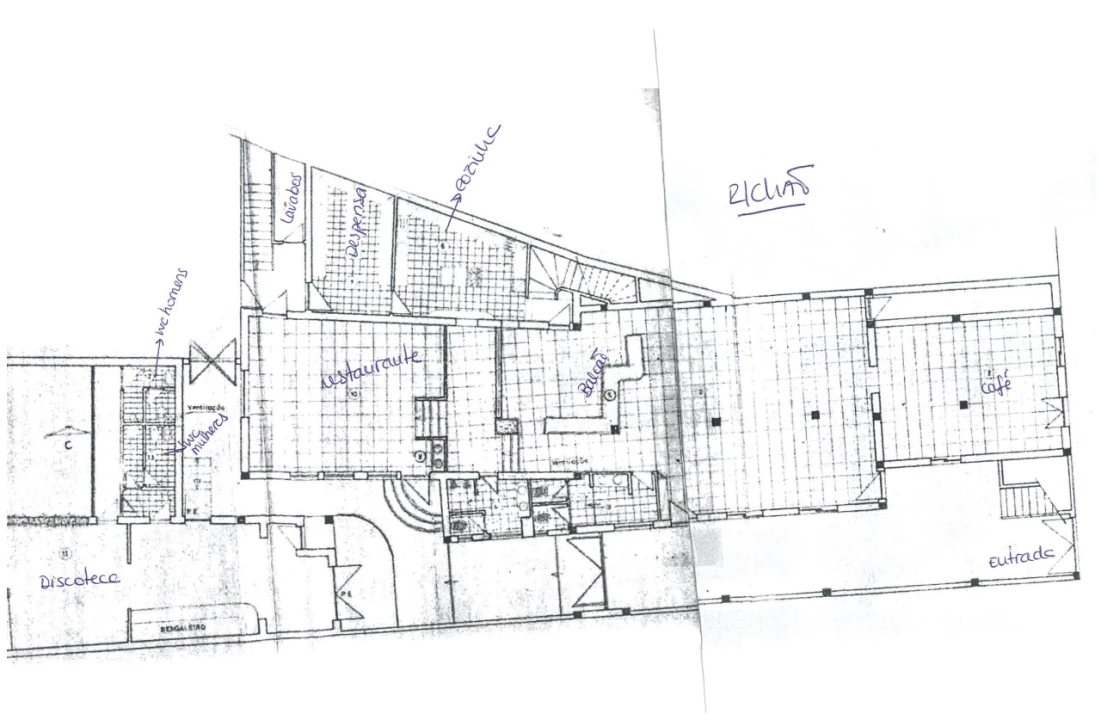 - R/c: Hall, café com cozinha e instalações sanitárias (M/F), arrumos; Acesso á discoteca no Andar;
