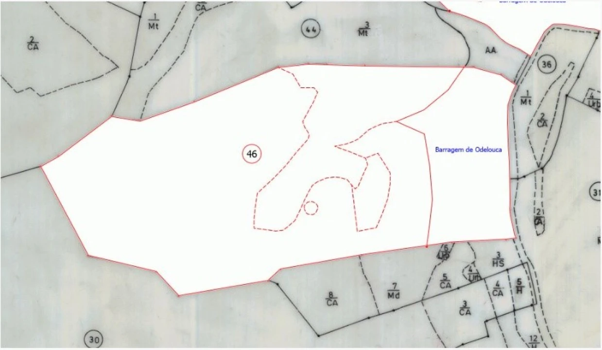 Prédio Misto - Moradia em ruínas com terreno, com a área de 43.573 m2, área de construção de 132m2, construída antes 1951, sitio Foz do Açor (barragem Odelouca) em Monchique.