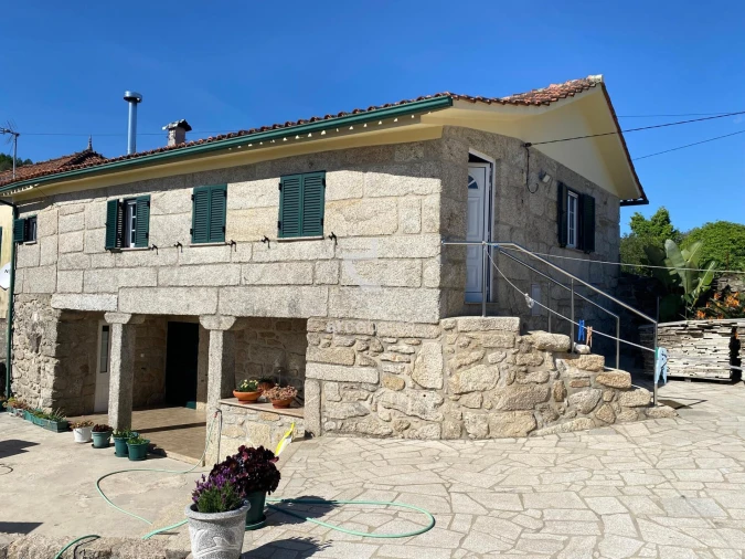 Moradia em pedra restaurada, mantendo o design original e tradicional, destacando-se pelo charme rústico.
