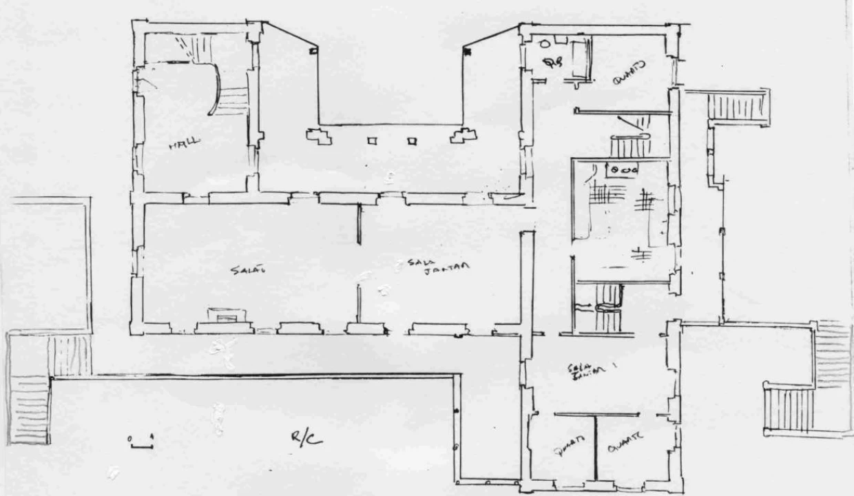 A cave conta com garrafeira, sala de jogos, arrecadações e engomadoria. No r/c um grande salão com 80m2 voltado para os jardins de poente, uma cozinha com características rústicas com um enorme fogão a lenha e dois cilindros em cobre, entre outros equipamentos, e ainda três quartos. No piso de cima estão localizados os restantes quartos, wc, escritório com lareira e teto de madeira e varanda de amplas dimensões voltada para o jardim.
