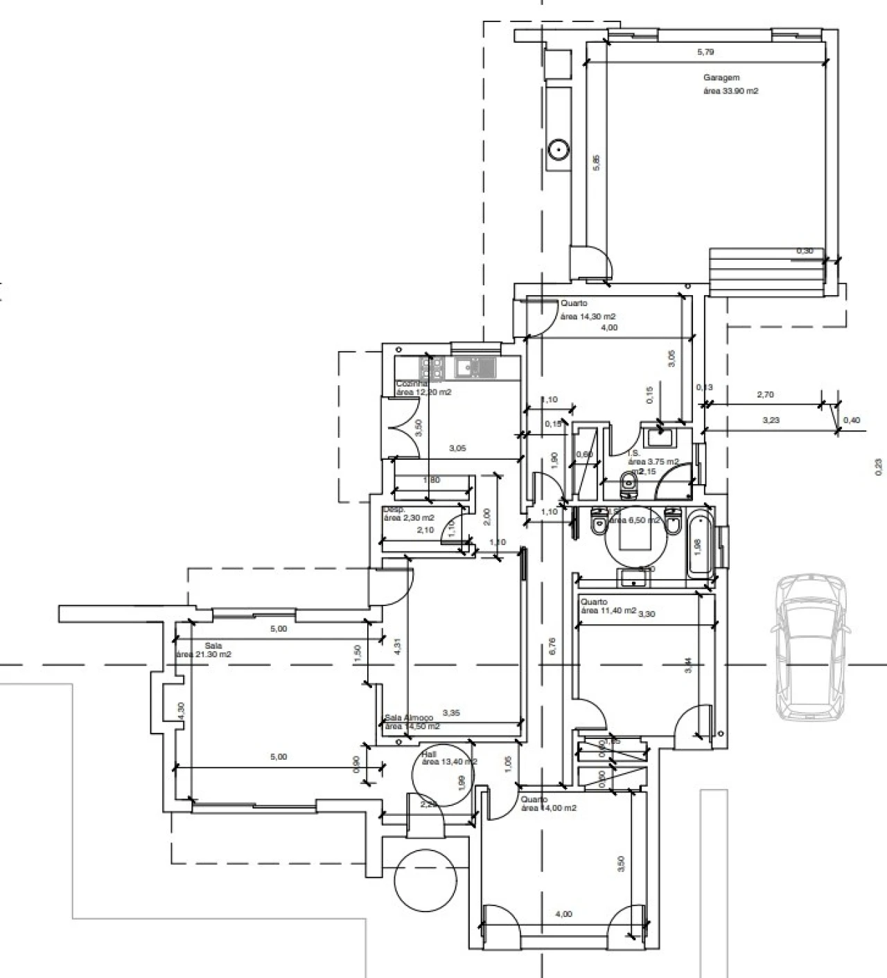 Tem atualmente um projeto aprovado para moradia T3, térrea com 147.55 m2 de área total.
